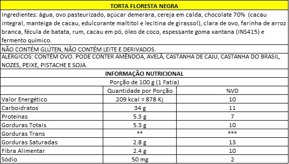 Especificações para Torta Floresta Negra